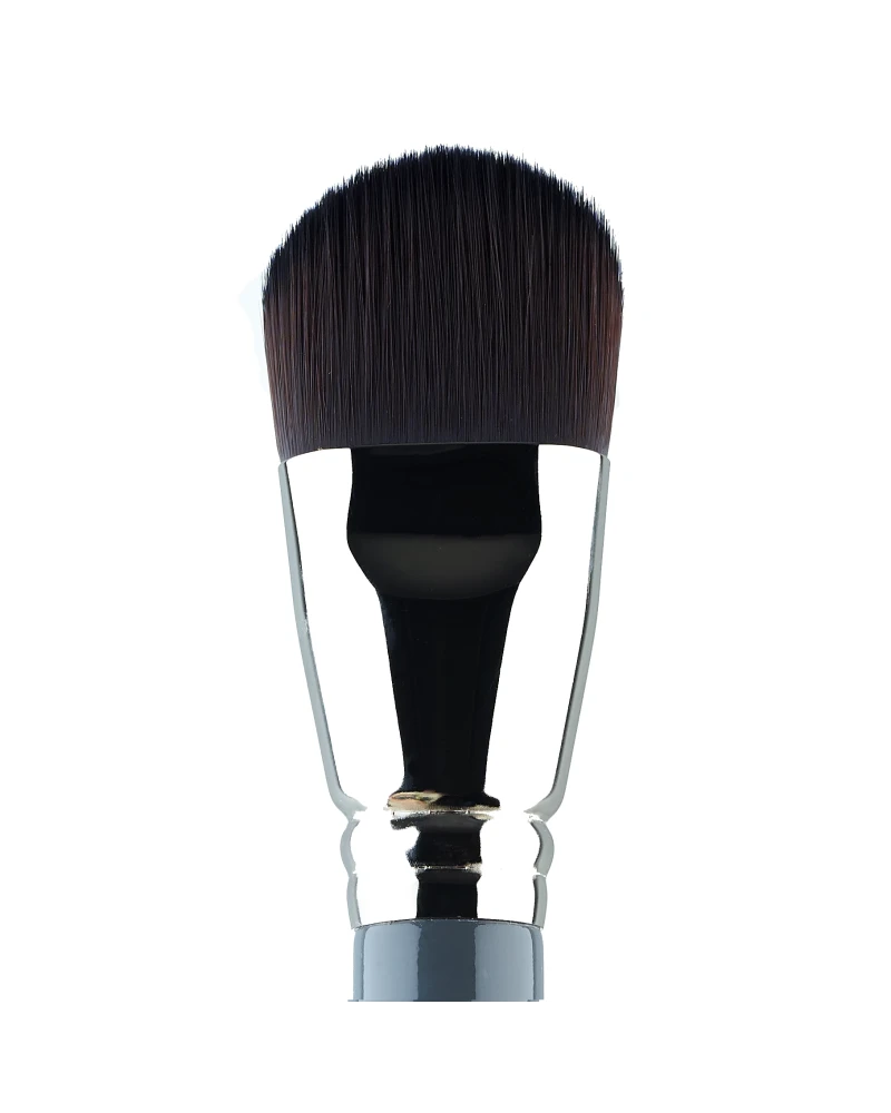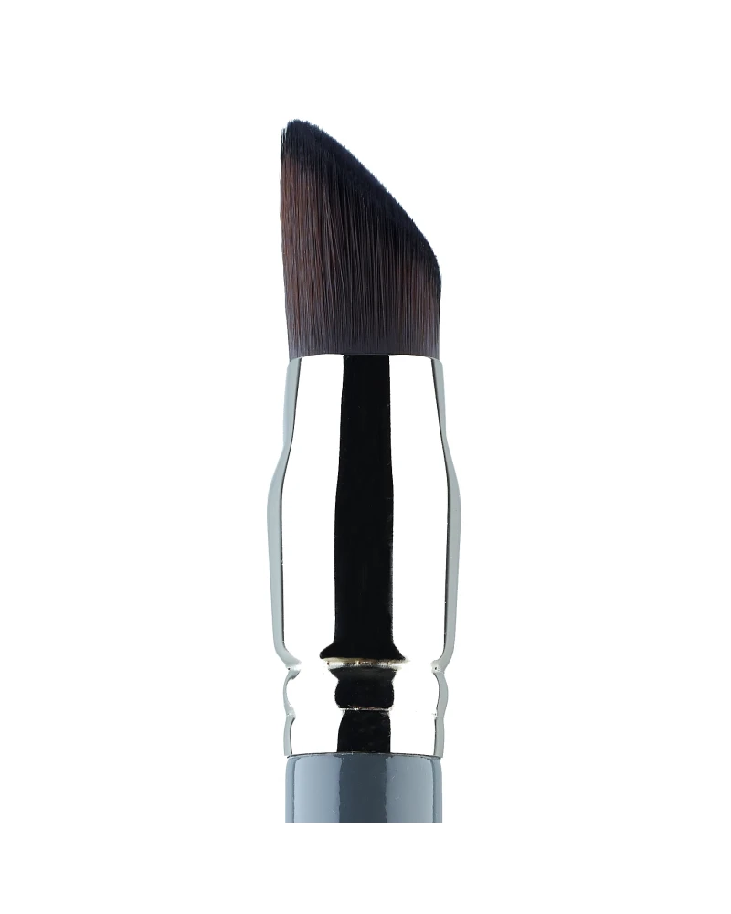Gracias a su forma (un híbrido entre brocha plana y biselada) y sus fibras sintéticas flexibles se adapta perfectamente a los contornos del rostro.
