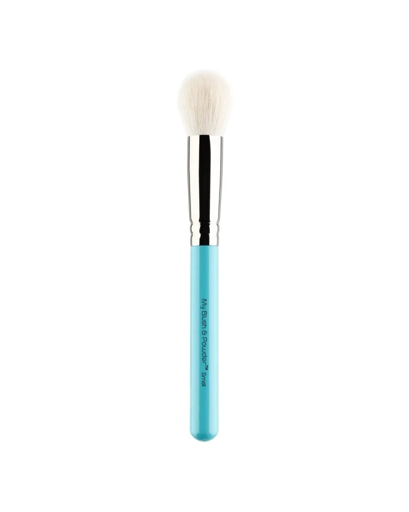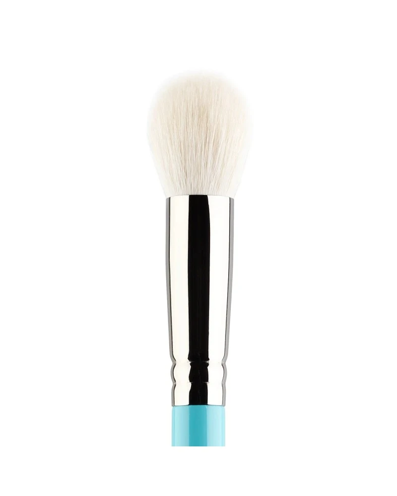 Brocha redondeada para aplicar polvos hecha con fibras naturales, gracias a su forma es perfecta para aplicar más concentrado los productos en polvo y al estar ligeramente capeada difumina los bordes con facilidad.