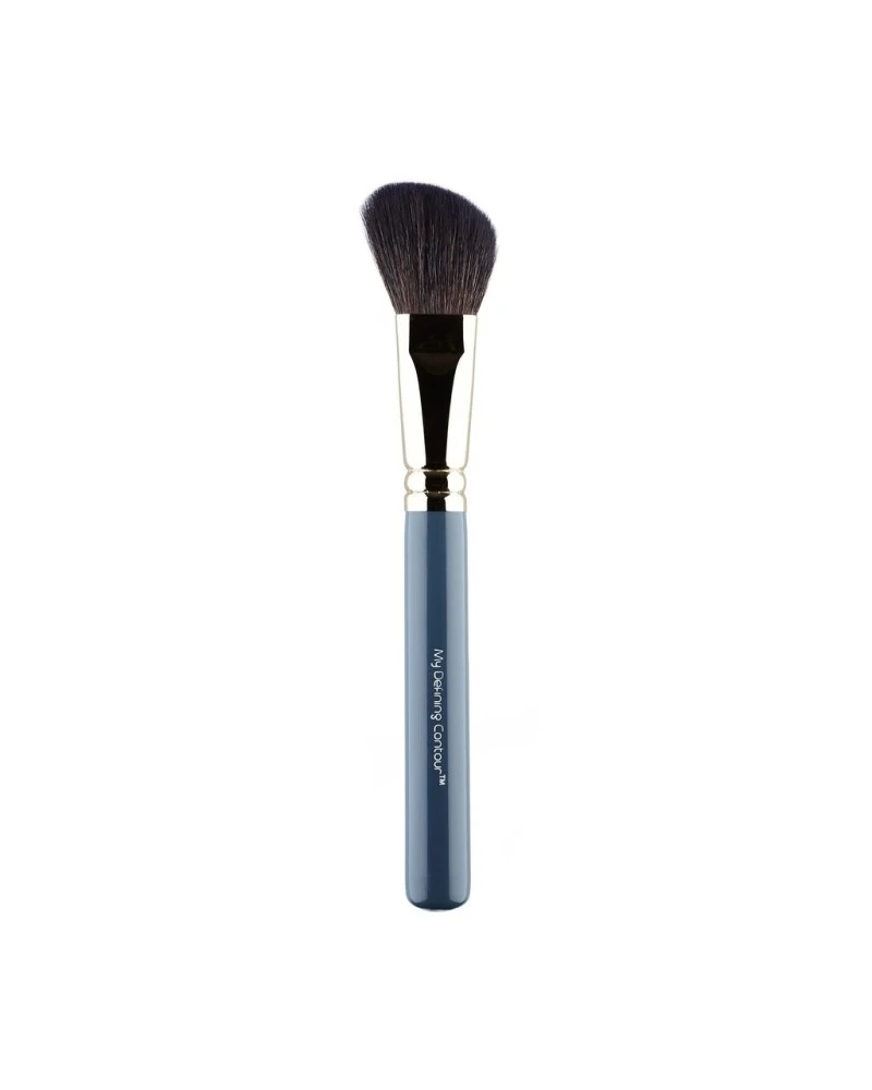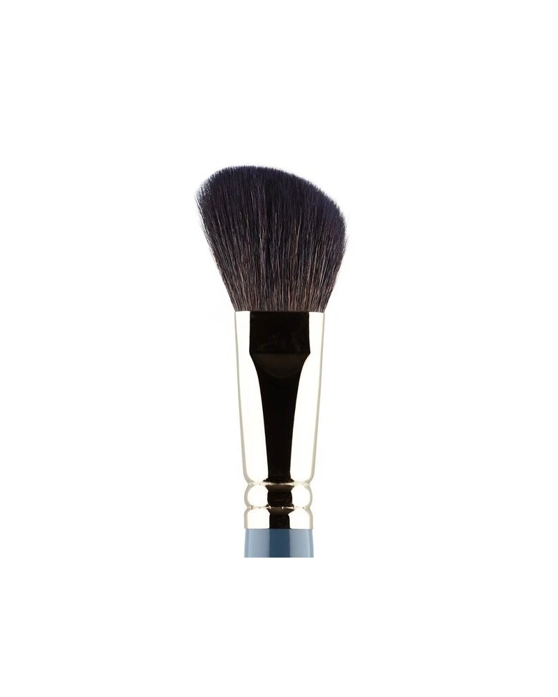 Tiene un diseño perfecto para definir y contornear. Su forma biselada ligeramente curvada se adapta al contorno del rostro como pómulos, sienes o la línea de la mandíbula. Las fibras naturales aplican el producto con facilidad y de un modo suave que difumina fórmulas en polvo y crema.