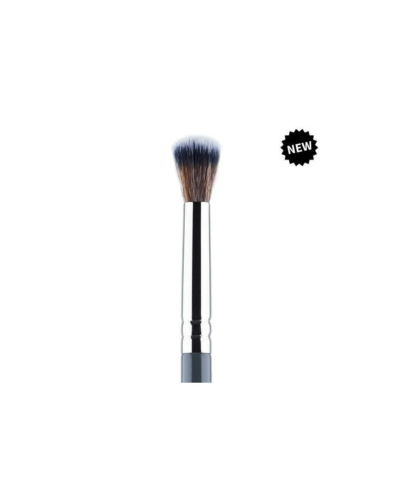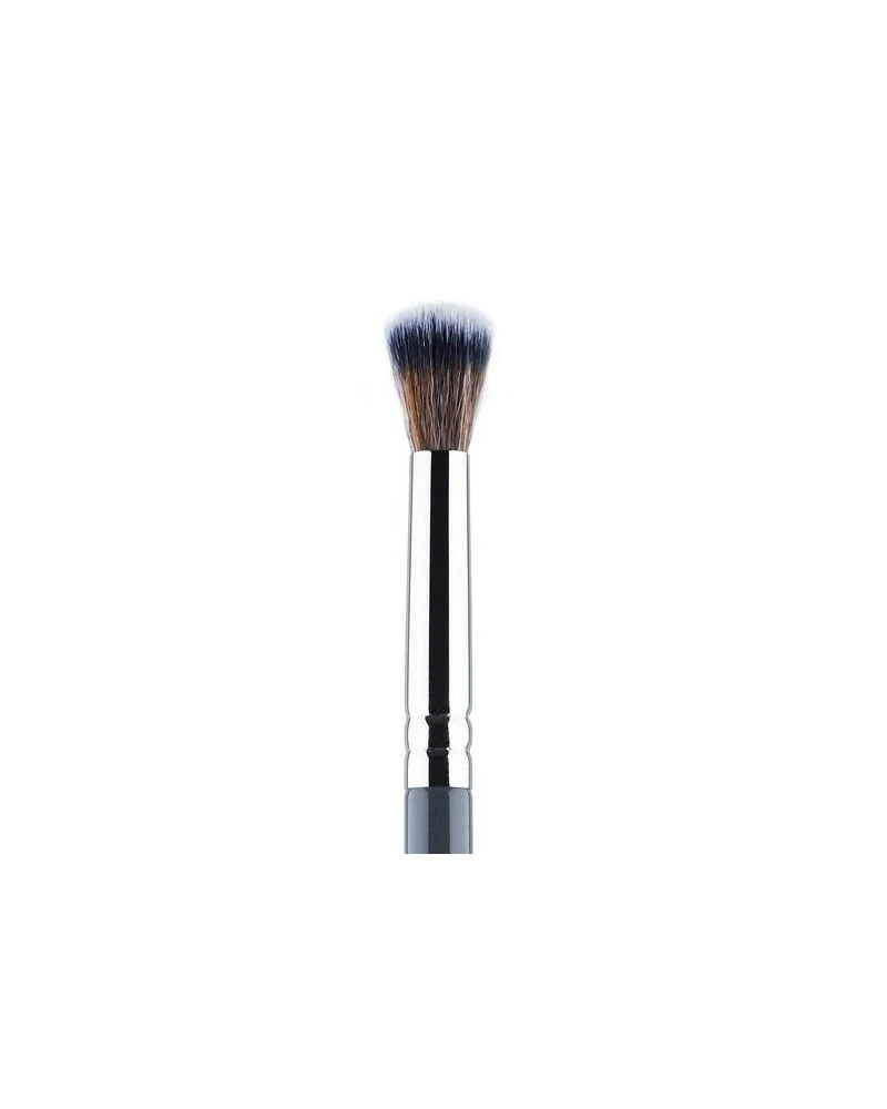 Este pincel para sombras de ojos sintética tiene una punta redonda y plana que te ayuda a trabajar el producto de manera rápida y uniforme.