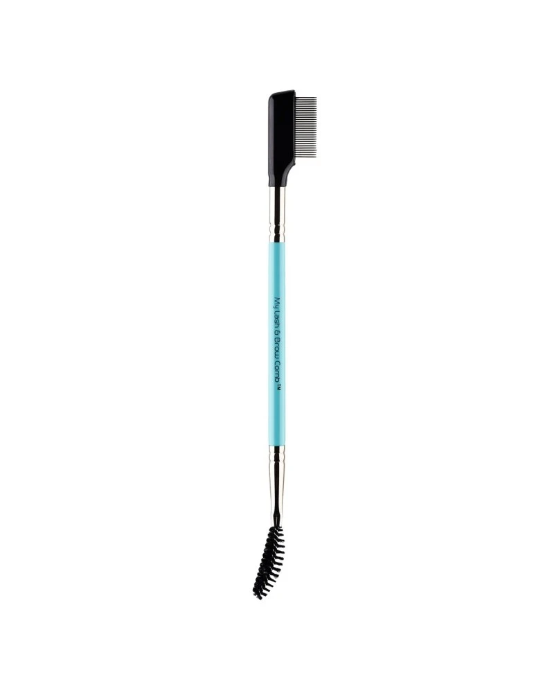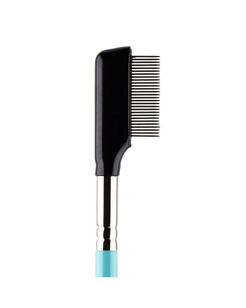 Un pincel de doble punta creado para arreglar y separar tanto las pestañas como las cejas. La parte del gupillon está ligeramente inclinada para peinar las cejas fácilmente, la parte del peine de púas metálicas es perfecta para limpiar exceso de mascara de pestañas y separar las pestañas.