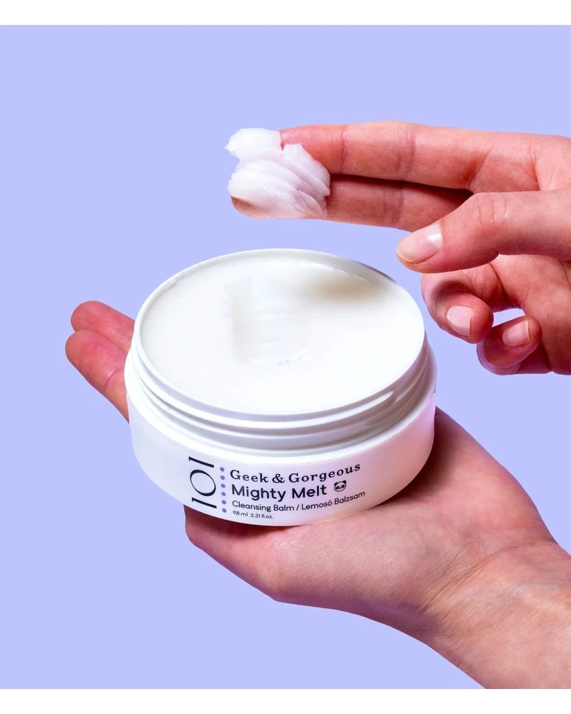 El bálsamo Mighty Melt, se emulsiona con agua, transformándose en una emulsión lechosa, que se aclara fácilmente, dejando la piel completamente limpia, suave y calmada, sin ningún tipo de residuo graso.