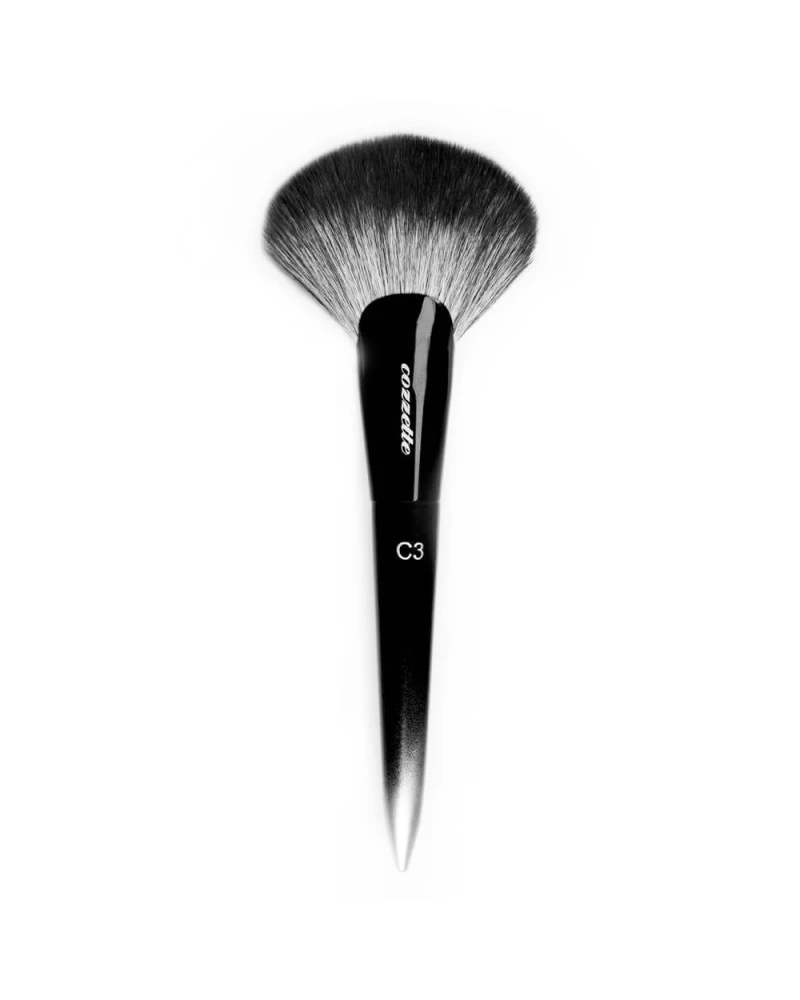 Esta brocha en forma de abanico permite integrar los productos en el rostro con facilidad.
