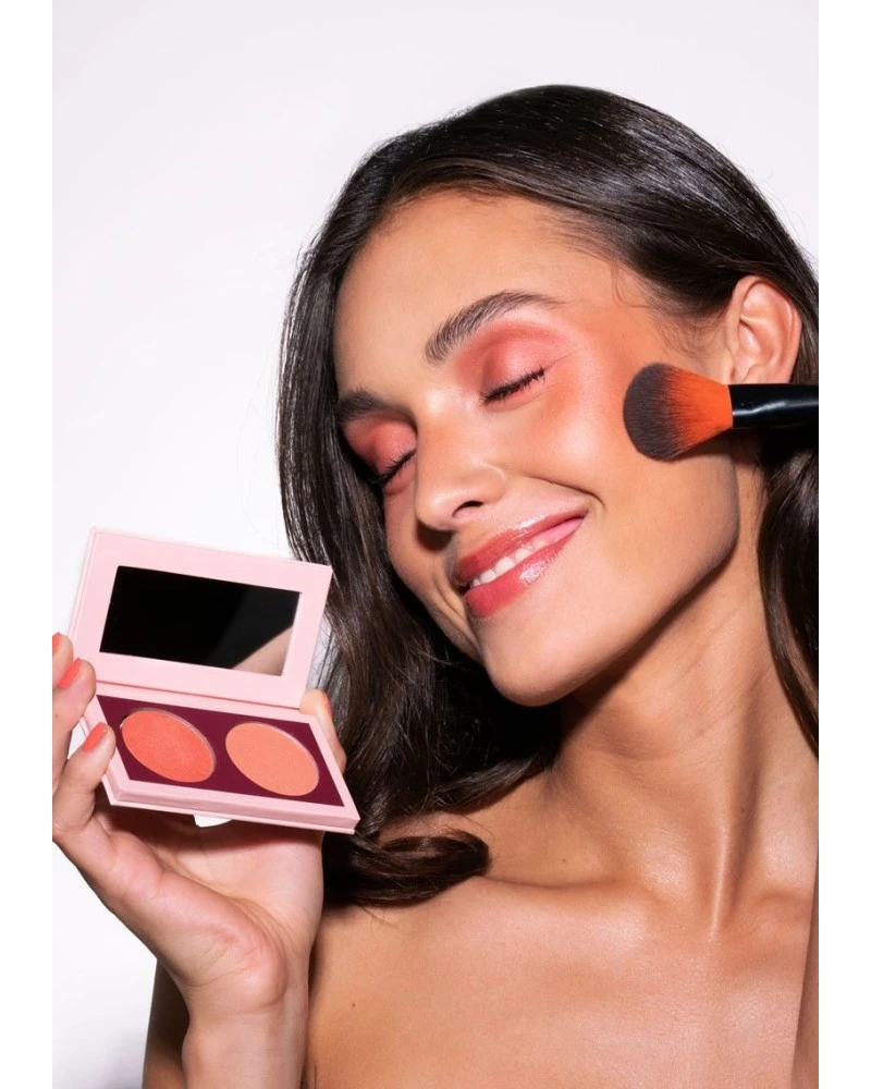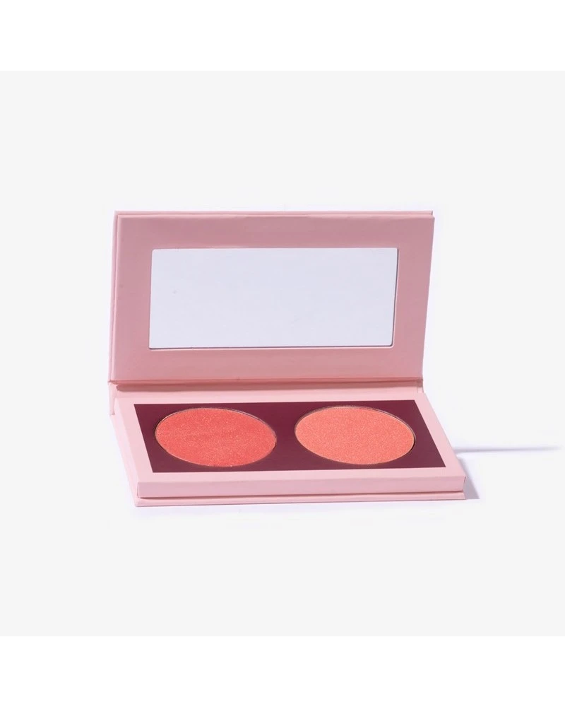 Una paleta dúo multiusos con dos tonos de acabado luminoso para mejillas y ojos