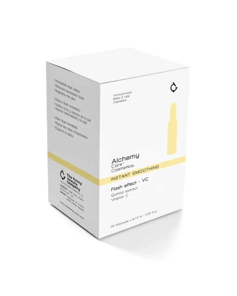 Ampollas concentradas de efecto flash monodosis con extracto de quinoa y vitamina C ideales para aplicar cuando se tiene un evento; borra los signos de cansancio, alisando y suavizando la piel a la vez que aporta un extra de luminosidad , uniformidad y vitalidad a la piel.