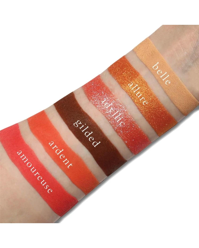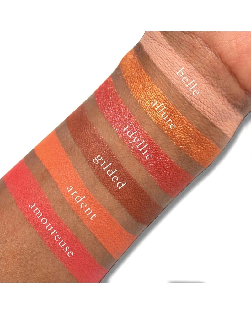 Bisous es una paleta perfecta para los amantes de los tonos cálidos, combina tonalidades naranjas y melocotones en diferentes acabados para aportar esa calidez a tus looks.