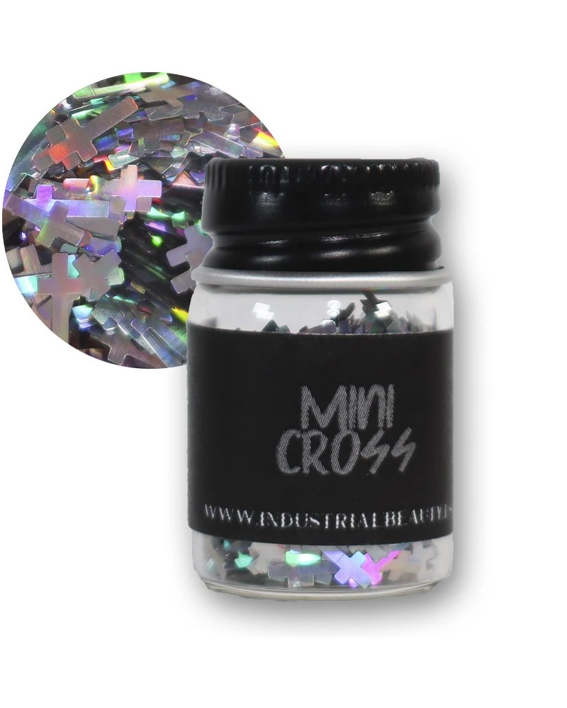 – Mini Cross: Glitter en forma de cruz plateada holográfica