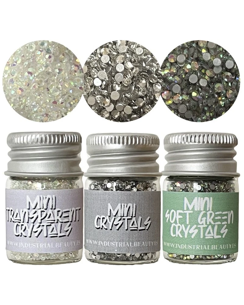 Esta colección contiene los 3 mini cristales que tenemos disponibles. Cada tarrito contiene unas 5000 unidades aproximadamente de cristales de un tamaño que va desde 1 a 1.3 milimetros.