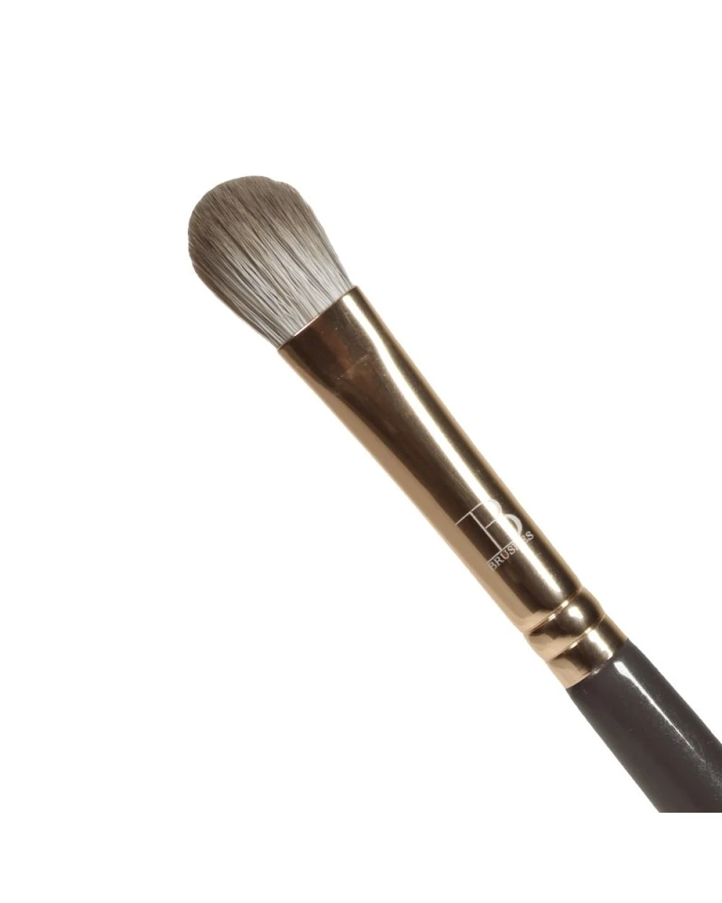 Este pincel está diseñado para difuminar las sombras de forma más precisa, tiene en la virola un ligero pellizco que le da una forma más plana lo que te permite también utilizarlo para aplicar sombras.