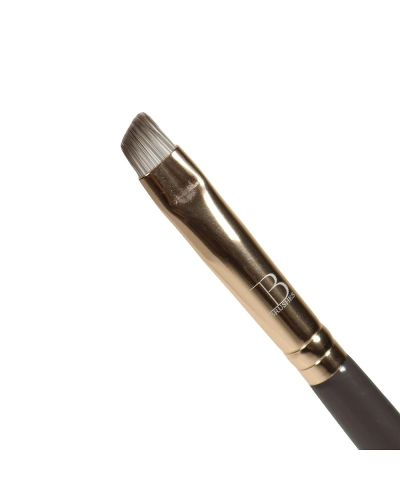 Pincel biselado para delinear, la firmeza es intermedia lo que lo hace perfecto tanto para hace el eyeliner como para maquillar las cejas, haciendo la técnica pelo a pelo, es tupido pero una vez se impregna bien de producto se compacta y realiza trazos bastante finos con precisión.