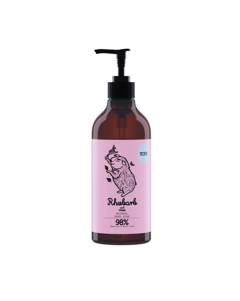 Jabón de manos que limpia, nutre y calma la piel, a la vez que deja un aroma refrescante, con toques herbales y florales del ruibarbo y las rosas que encontramos entre sus ingredientes.