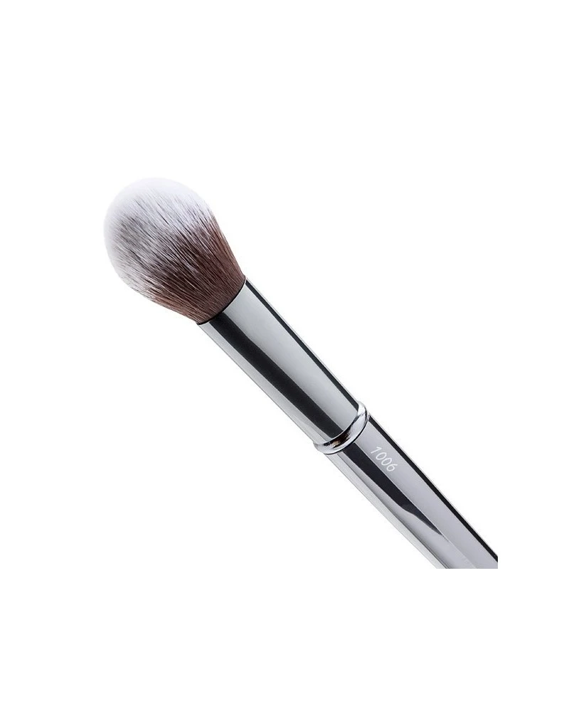 Brocha para aplicar producto en zonas más concretas del rostro. Su forma y densidad la hacen ideal para aplicar iluminador en la zona alta del pómulo, también resulta muy cómoda para sellar el corrector en la zona de la ojera.