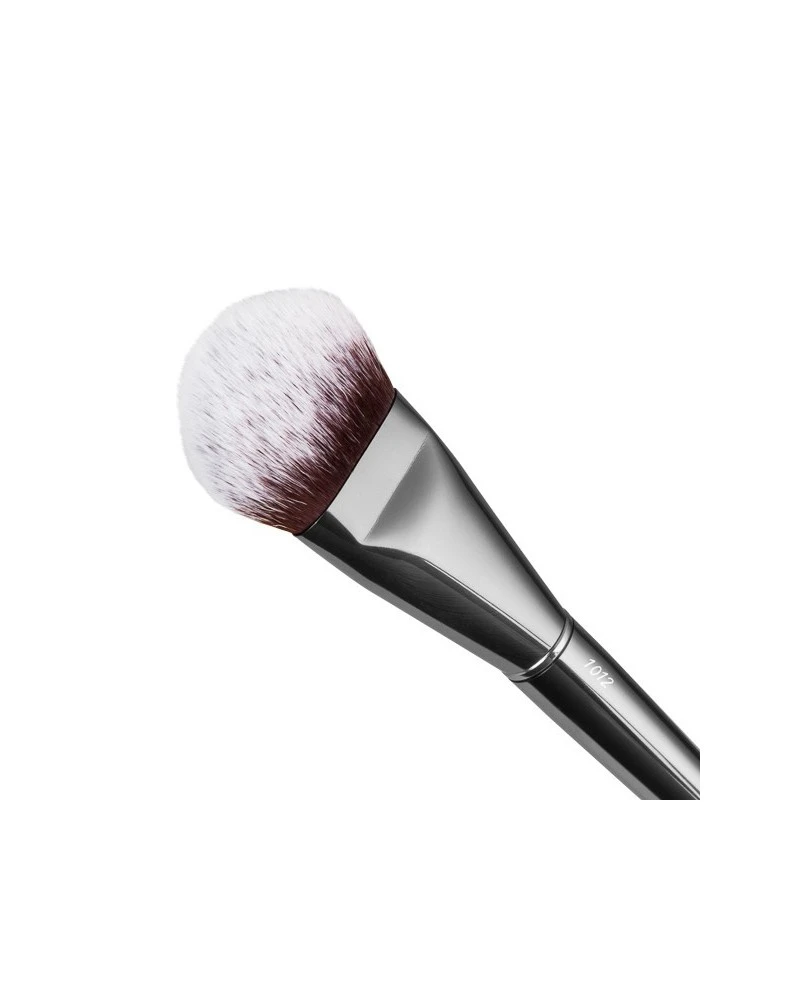 Brocha para productos fluidos o en crema. Gracias a su forma y diseño forma permite aplicar la base de maquillaje y fundirla con la piel para conseguir una cobertura ligera.