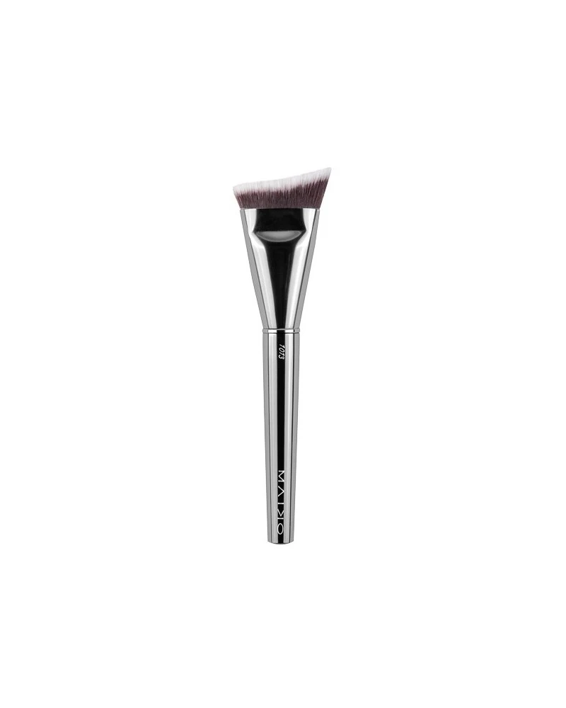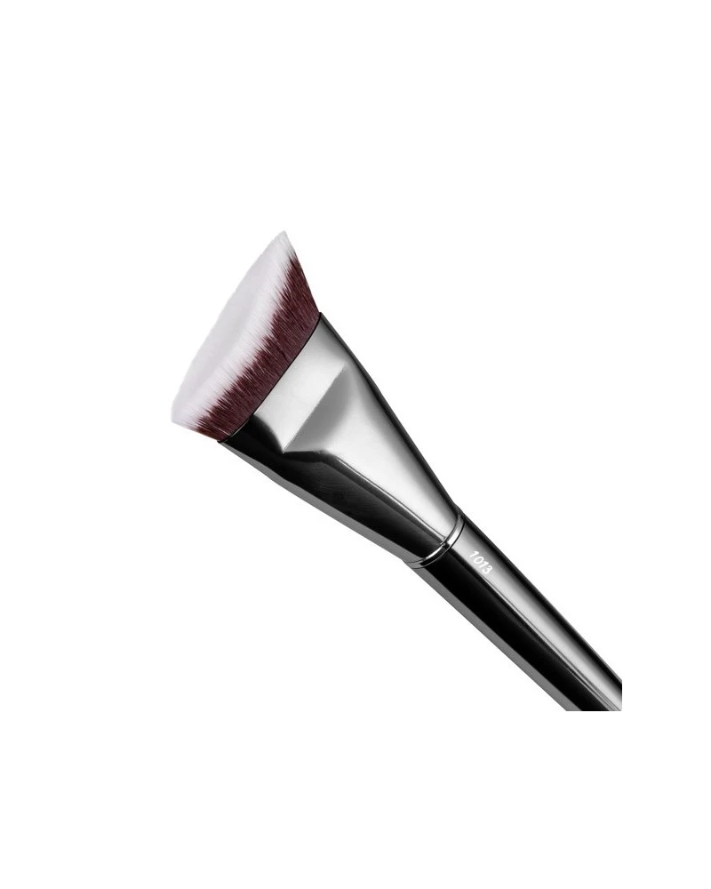Brocha para productos fluidos o crema. Su forma angular y su diseño resulta ideal para contornear el rostro y darle forma.