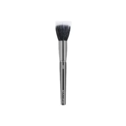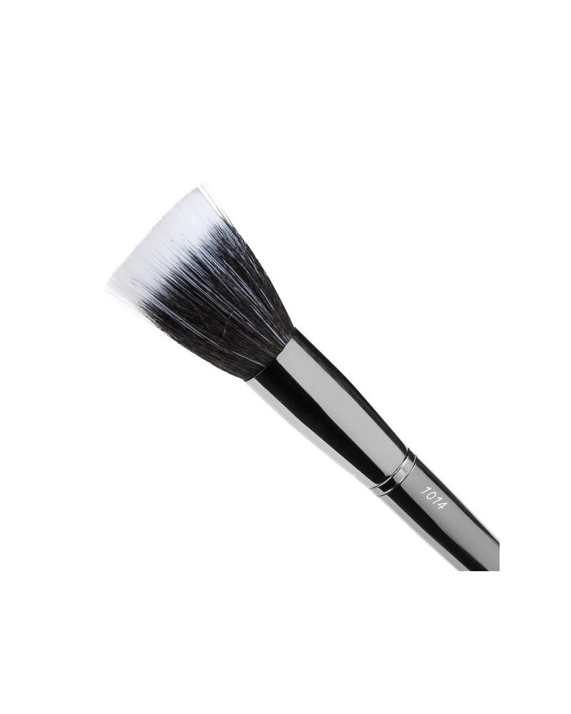Brocha tipo mofeta con doble fibra de corte plano, ideal para aplicar y difuminar productos en crema y polvos minerales.
