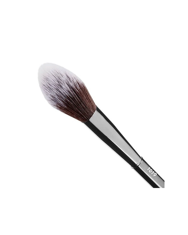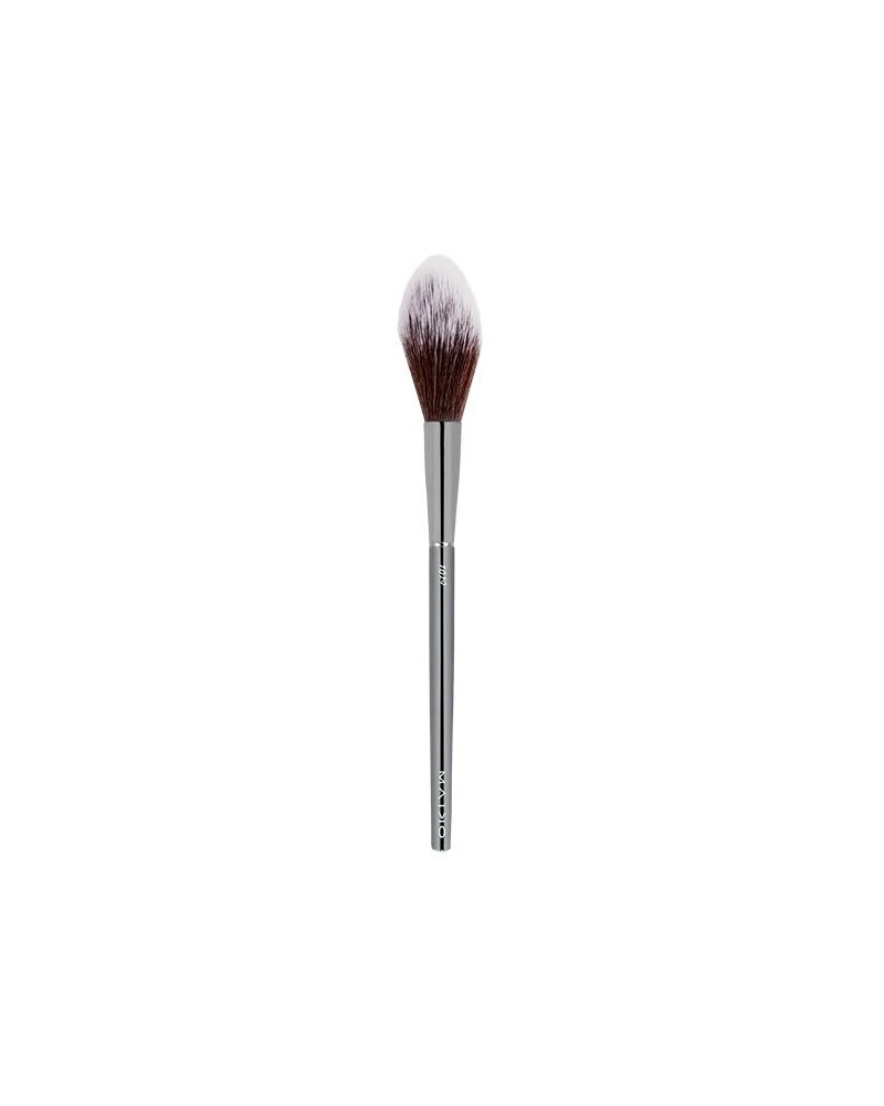 Brocha para rostro en forma de llama, de fibras largas, flexibles y suaves que permite aplicar e integrar a la perfección productos en polvo.