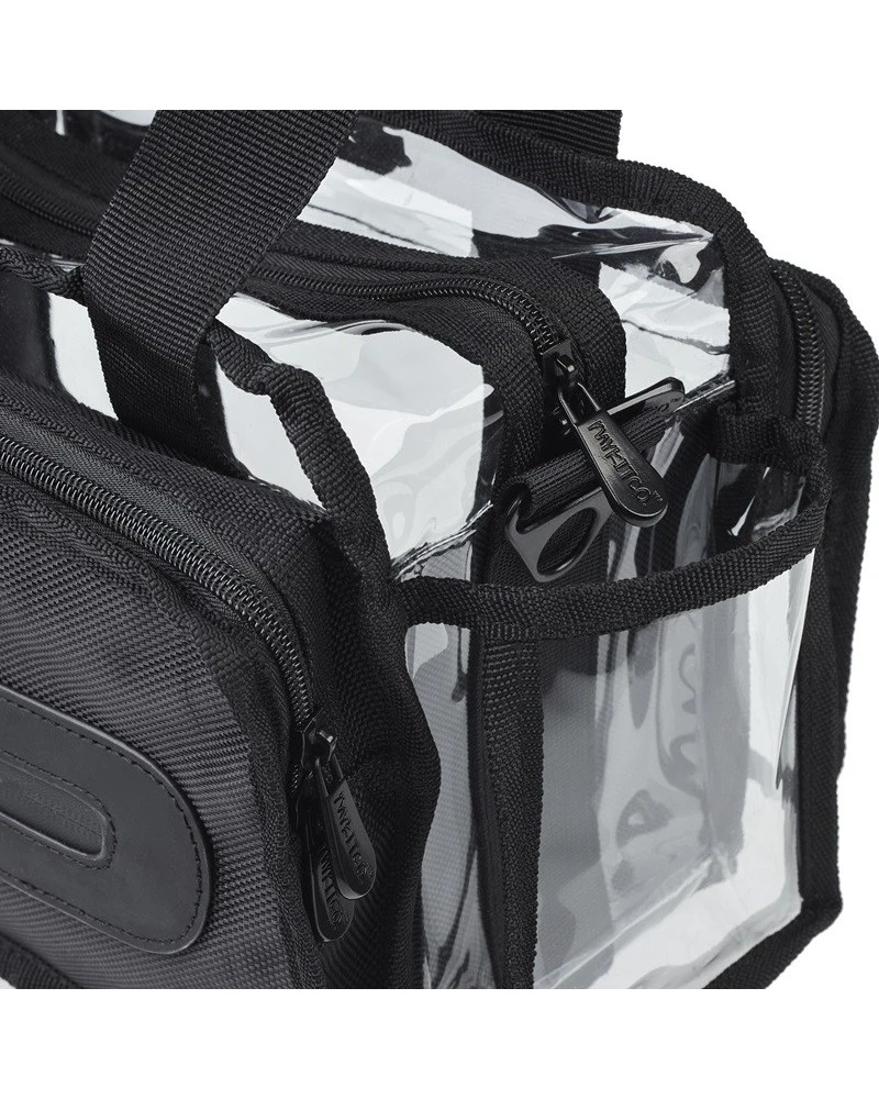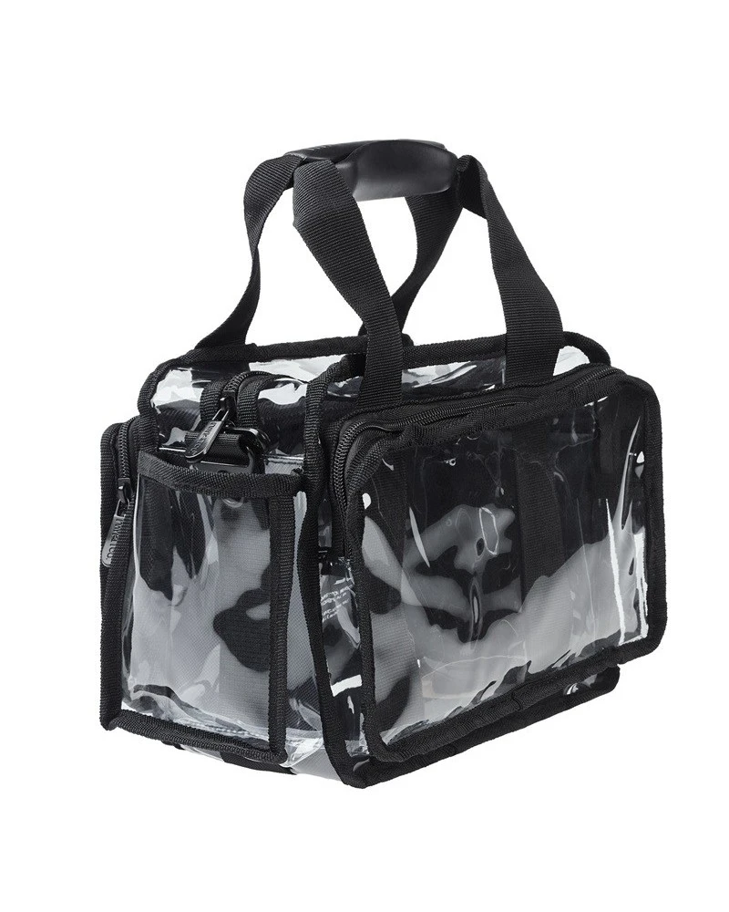 • Un compartimento principal, un bolsillo trasero y dos bolsillos laterales transparentes le permiten separar sus productos como desee.