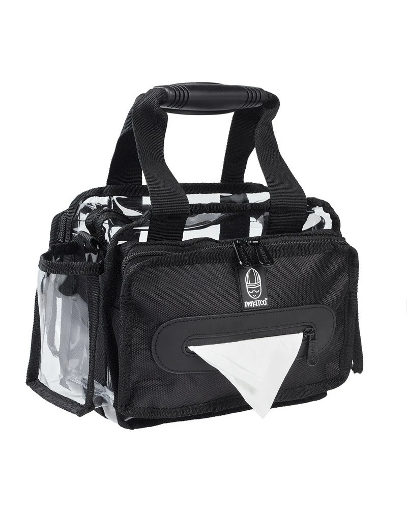 Incorpora incluso un compartimento con apertura para pañuelos de papel. ¡Perfecto como maletín de retoque!