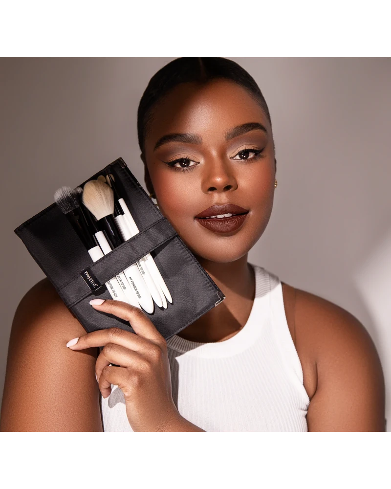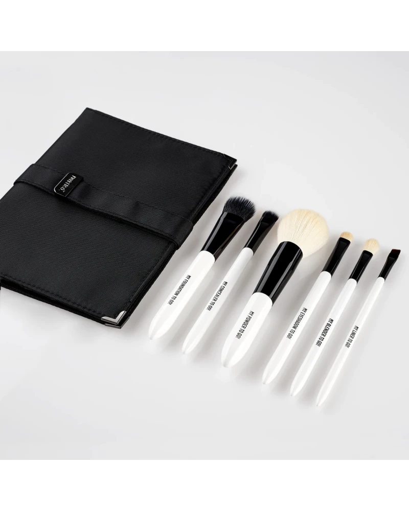 TO GO! BRUSH SET es un set de seis pinceles de maquillaje hechos a mano que se guardan perfectamente en su propio estuche delgado y elegante. Perfecto para maquillarnos sobre la marcha de manera intuitiva y rápida o para llevar de viaje.