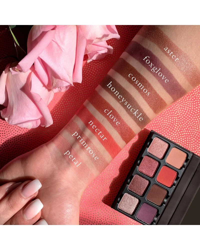 Shades 1 (Petal), 2 (Nectar): Talc, Mica, Octyldodecyl Stearoyl Stearate, Zinc Stearate. Shade 3 (Honeysuckle): Talc, Mica, Octyldodecyl Stearoyl Stearate, Zinc Stearate, Potassium Sorbate, Sodium Benzoate. Shade 4 (Foxglove): Mica, Octyldodecyl Stearoyl Stearate, Talc, Zinc Stearate. Shade 5 (Primrose): Mica, Talc, Octyldodecyl Stearoyl Stearate, Calcium Sodium Borosilicate, Zinc Stearate, Silica. Shade 6 (clove): Mica, Talc, Octyldodecyl Stearoyl Stearate, Zinc Stearate, Potassium Sorbate, Sodium Benzoate. Shade 7(