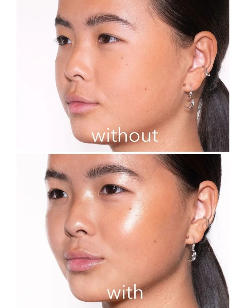 Se puede usar para resaltar los puntos altos de la cara, como prebase o para mezclar con nuestra crema de día o base para dejar un acabado radiante.