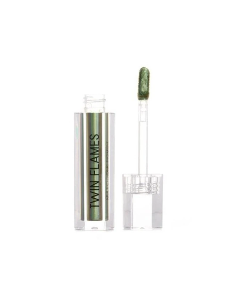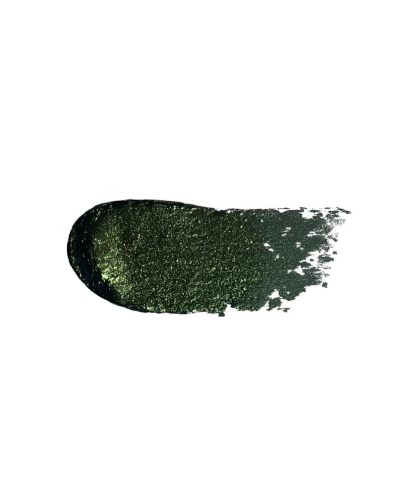 Sombra líquida multicolor de alta pigmentación, que muestra un cambio entre dos tonos que se complementan. Cuando se aplica, deja un aspecto cromado multidimensional, holográfico.