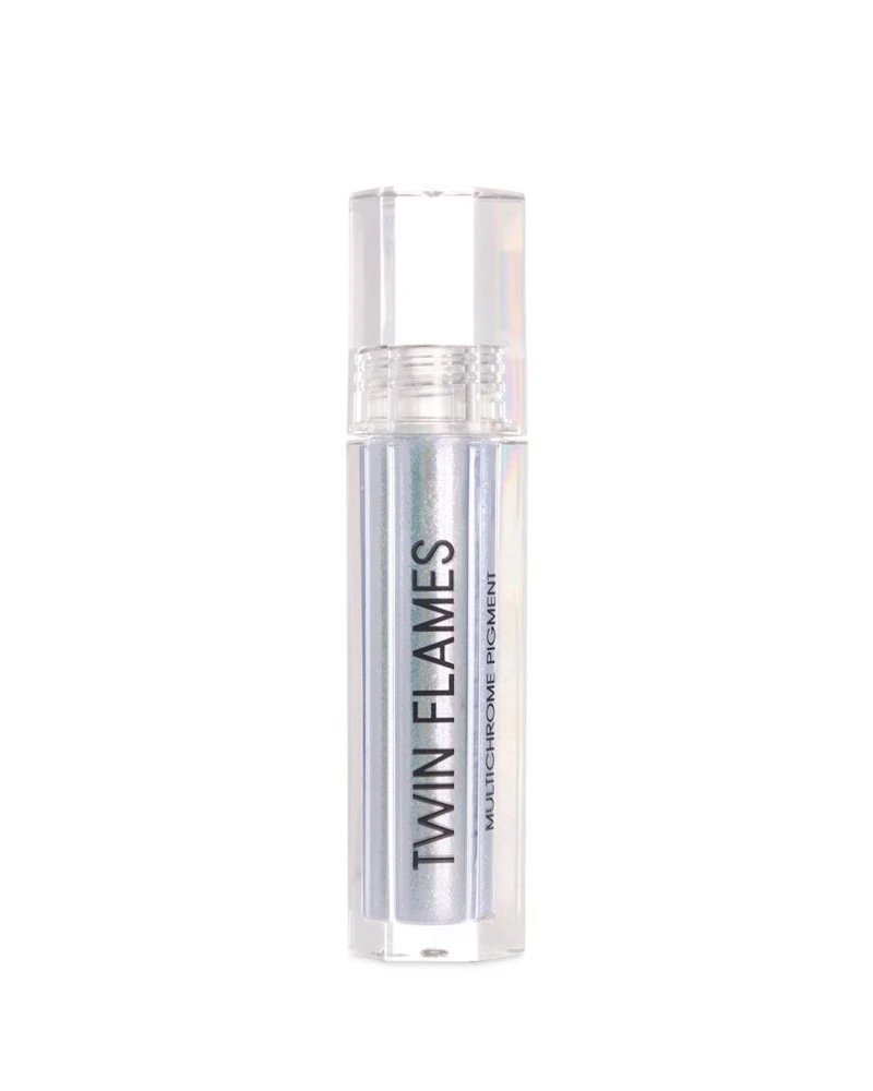 Sombra líquida multicolor de alta pigmentación, que muestra un cambio entre dos tonos que se complementan. Cuando se aplica, deja un aspecto cromado multidimensional, holográfico.