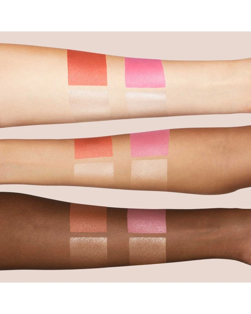 - Un solo producto contiene dos texturas multiusos que pueden usarse en mejillas, labios y altos puntos del rostro.