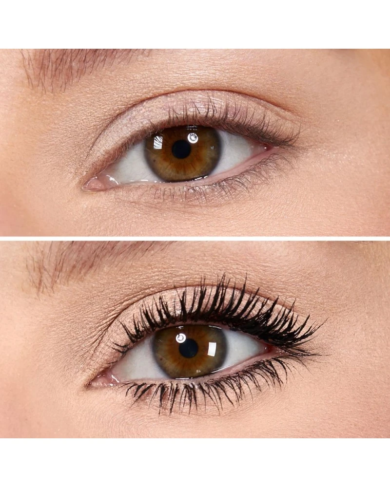 Máscara de pestañas de volumen extra que intensifica inmediatamente las pestañas desde la raíz, dejando las puntas alargadas, levantadas y separadas.